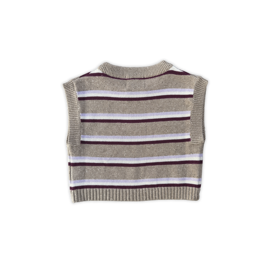 Organic Stripe Apple Knit Vest - Oatmilk