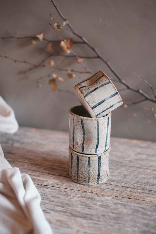 Slab-Built Espresso Cups — Blue Oxide Stripe