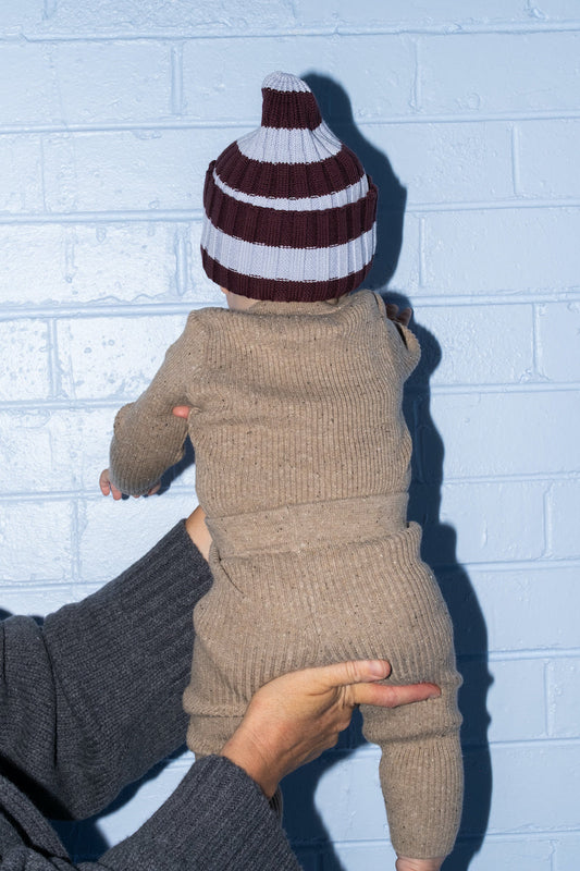Organic Striped Pixie Knit Beanie - Plum & Haze