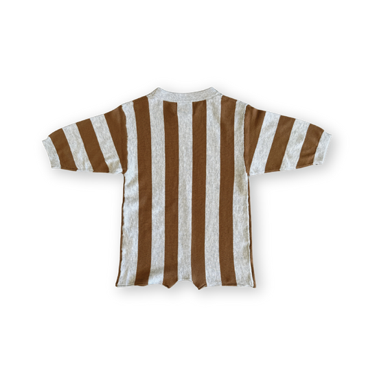Organic Vertical Stripe Knit Romper - Grey Marle & Brownie