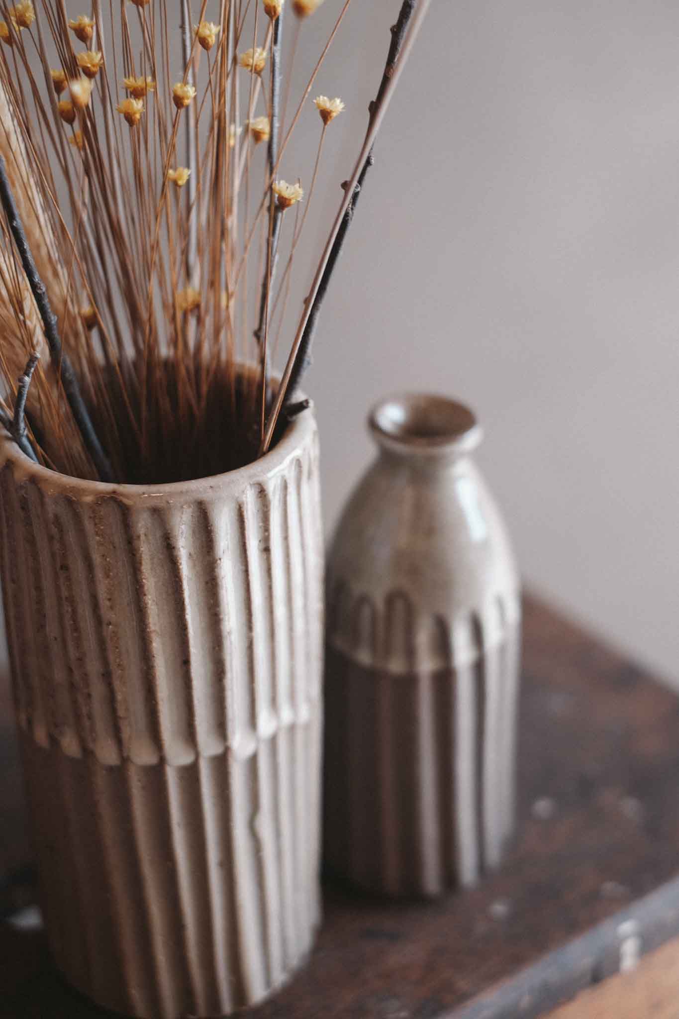 Hand formed vase featuring carved detailing worked gently into the surface. The carving is done by hand, creating subtle variations in line and texture that give each piece its own character.