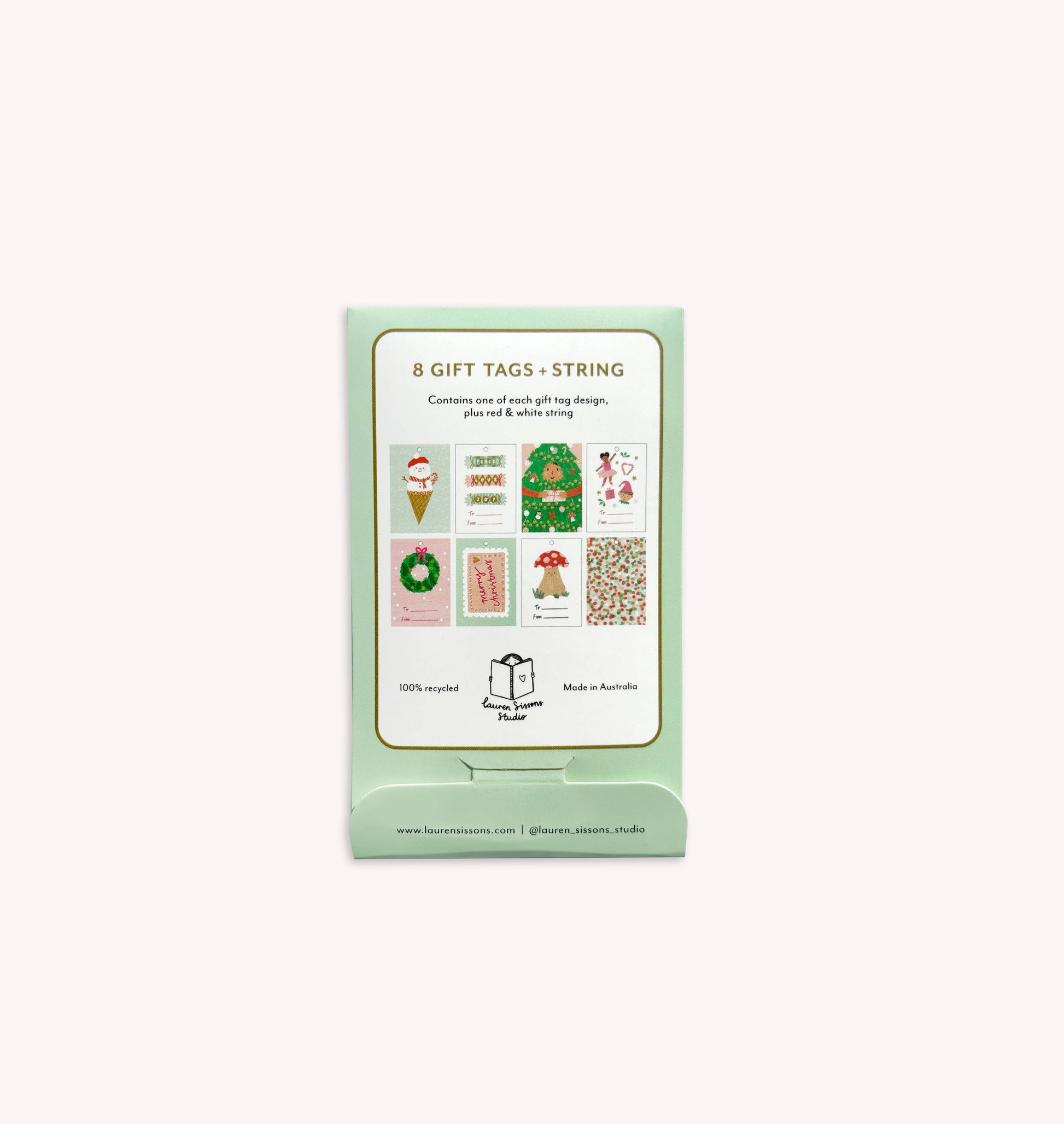 Festive Gift Tag Set - 8 Holiday Christmas Tags String