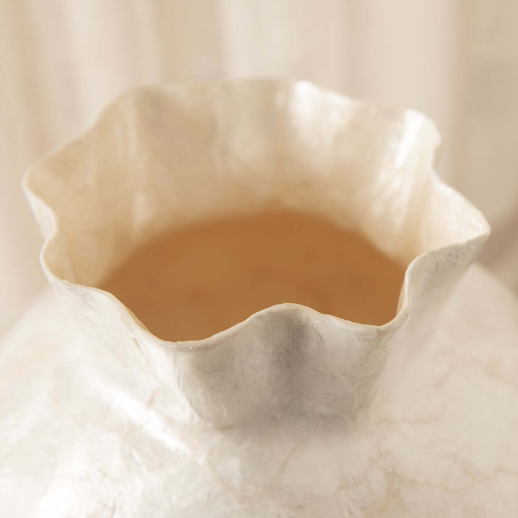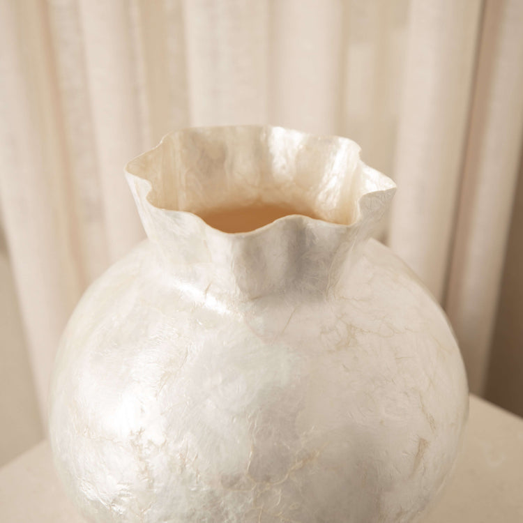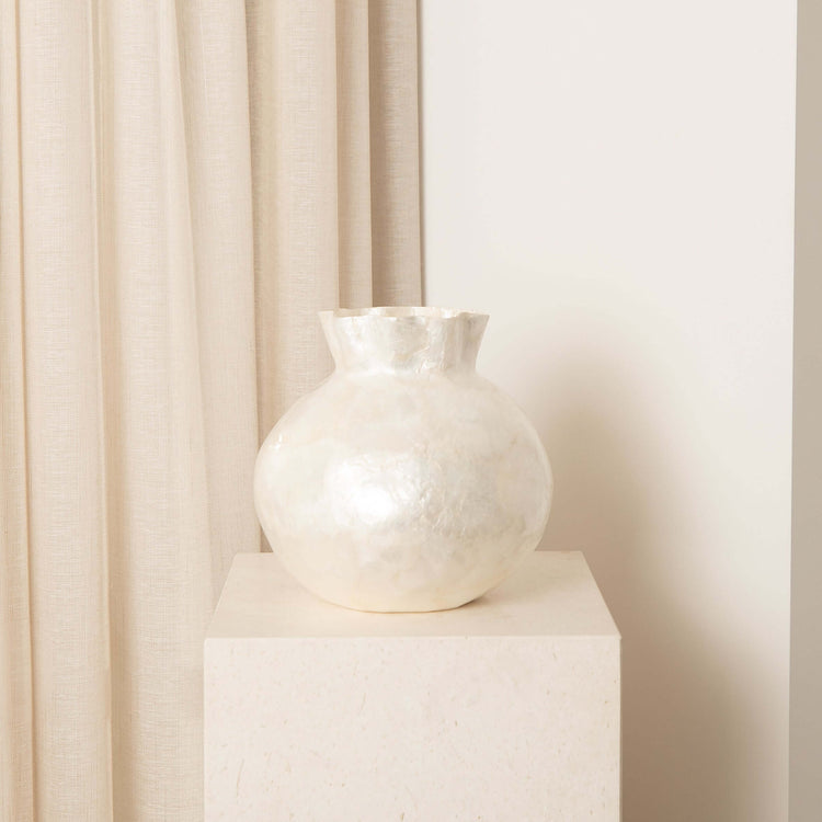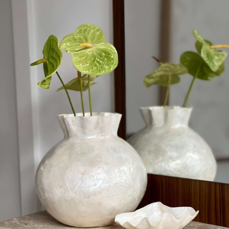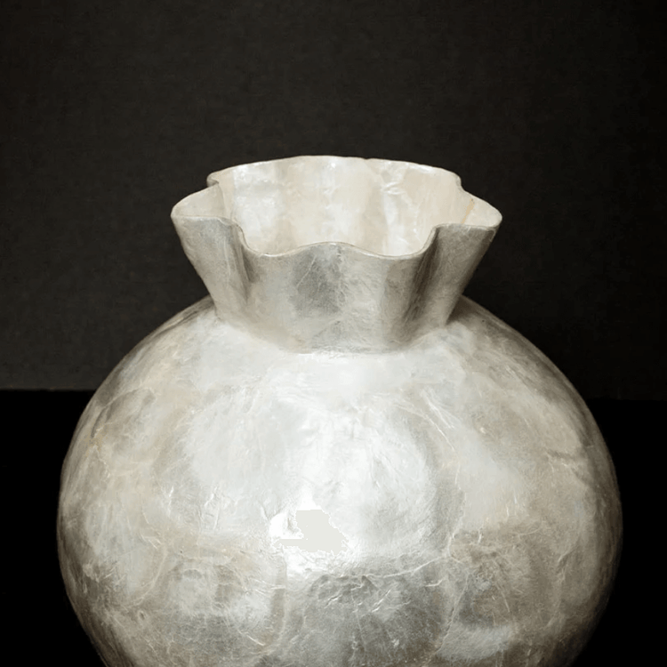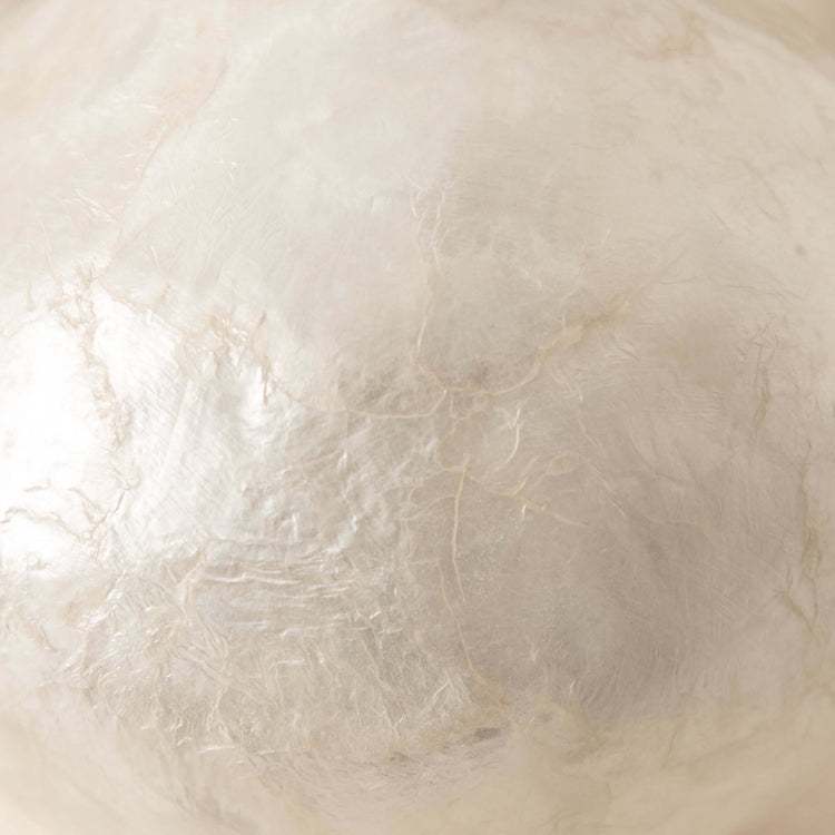 Skilfully handcrafted natural Capiz shell found in the seas of the Philippines. Over centuries this craftsmanship has been practisedd and ingrained in Filipino craftsmanship. This beautiful organic material offers a translucent and natural shimmering iridescence.