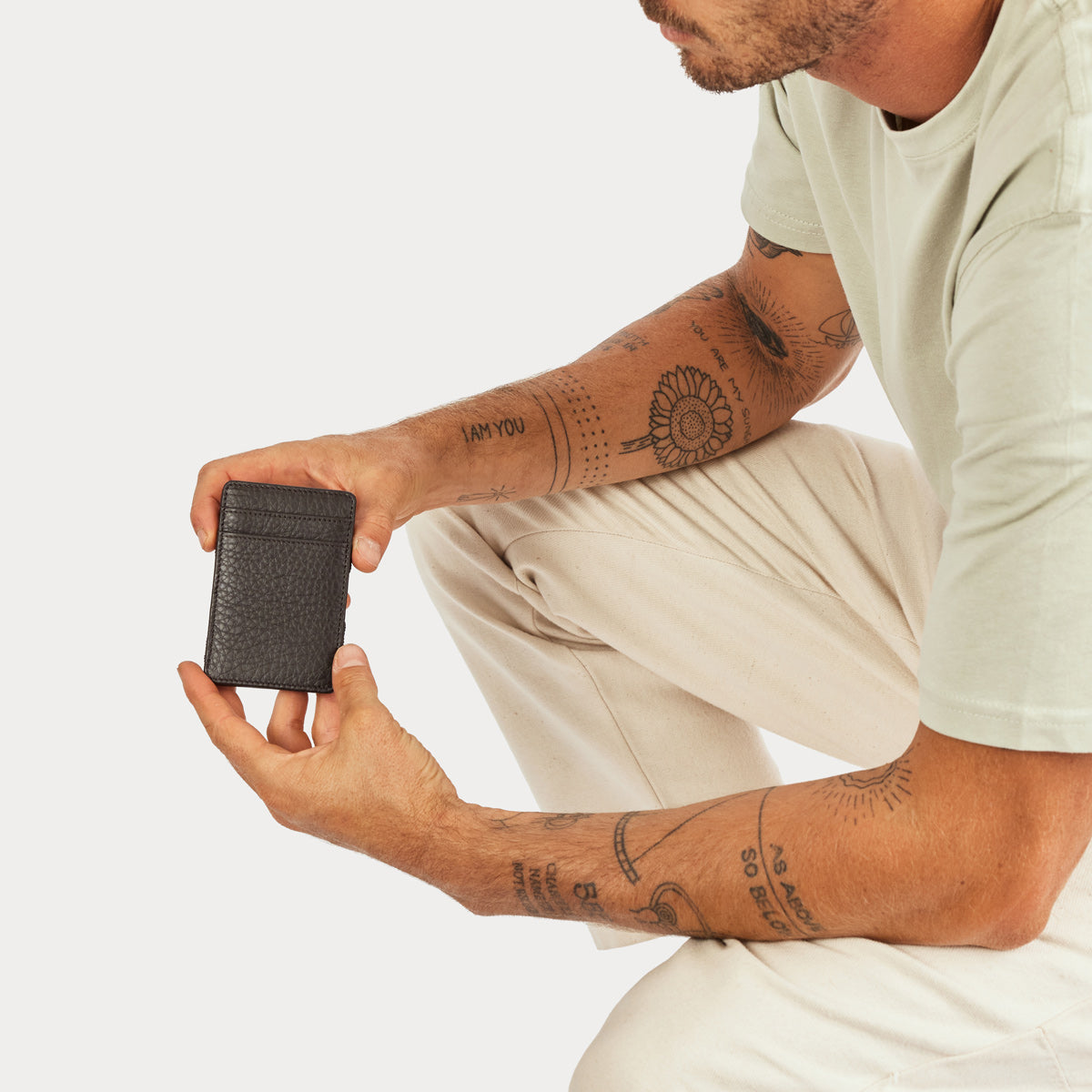 One sure fire way of doubling your money is to fold it over once and put it back in your pocket - making the Flip wallets a smart little investment. Made from soft cowhide leather, and all stitched card seams - making them last twice as long {anecdotal evidence only}.
