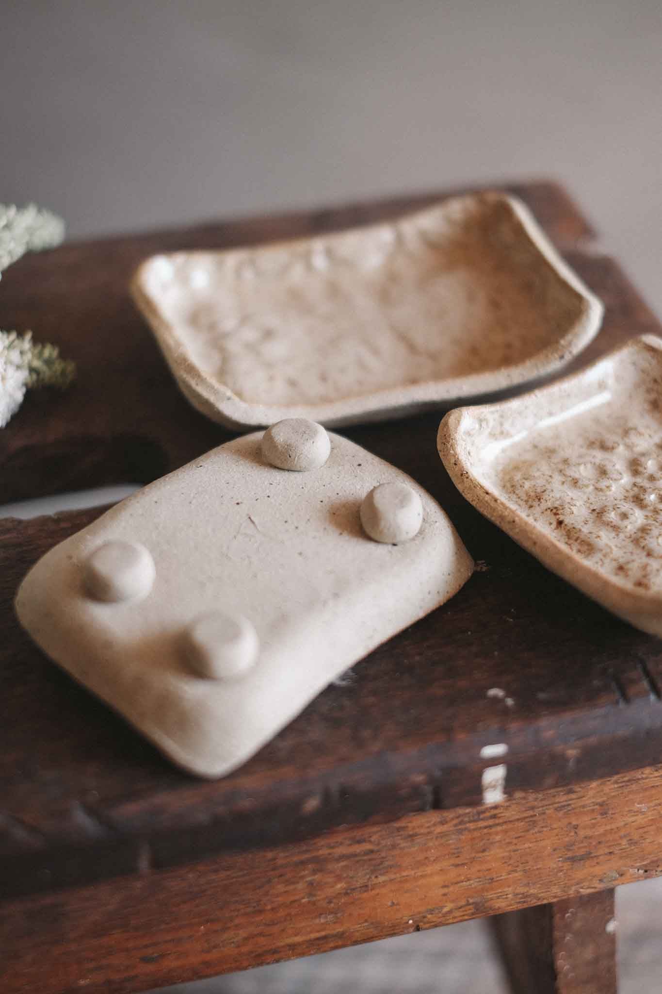 Hand formed with gentle, organic lines, this dish features a delicate floral print embossed into the surface. Each piece is pressed individually, creating subtle variations that make every dish one of a kind.