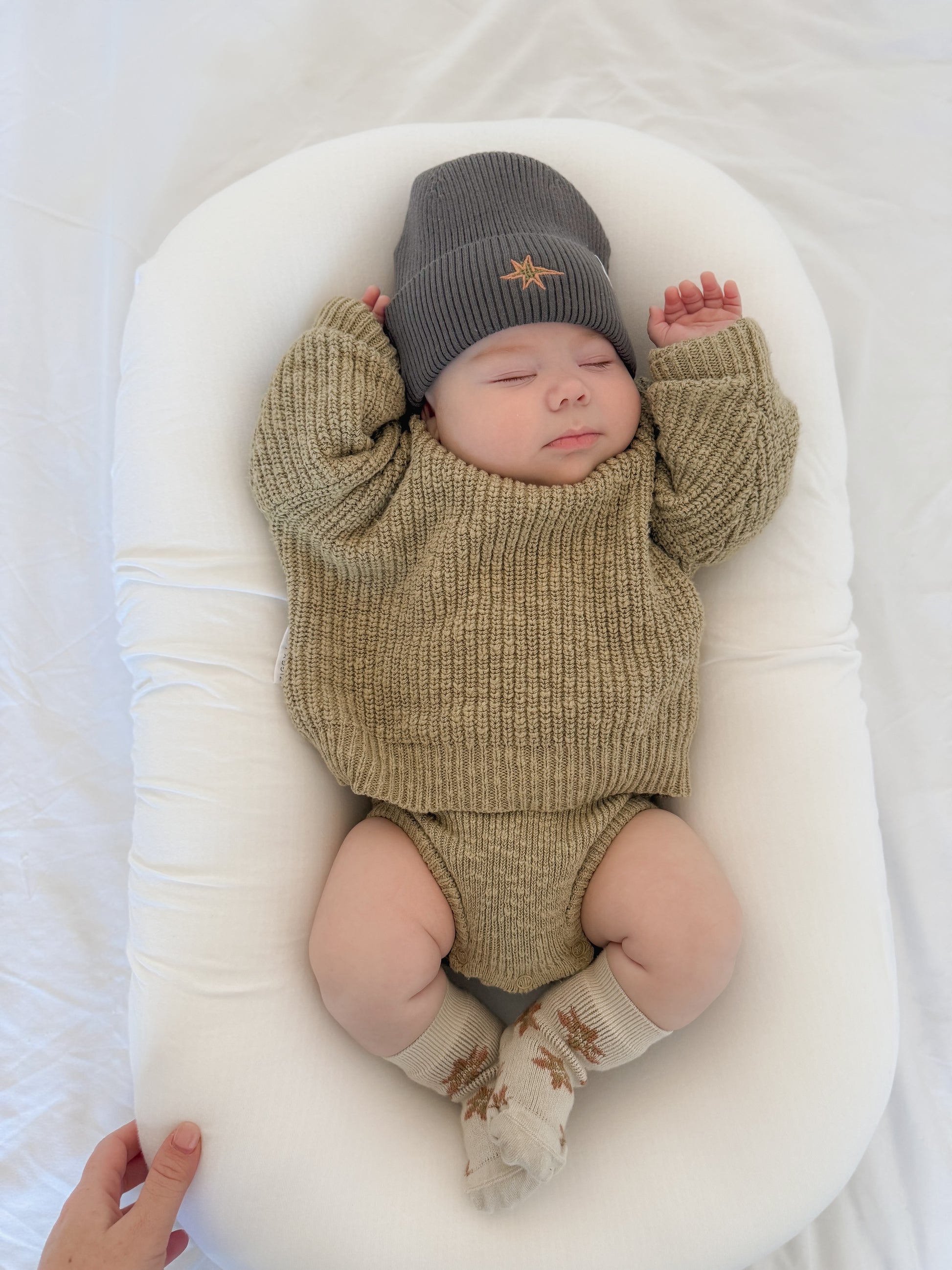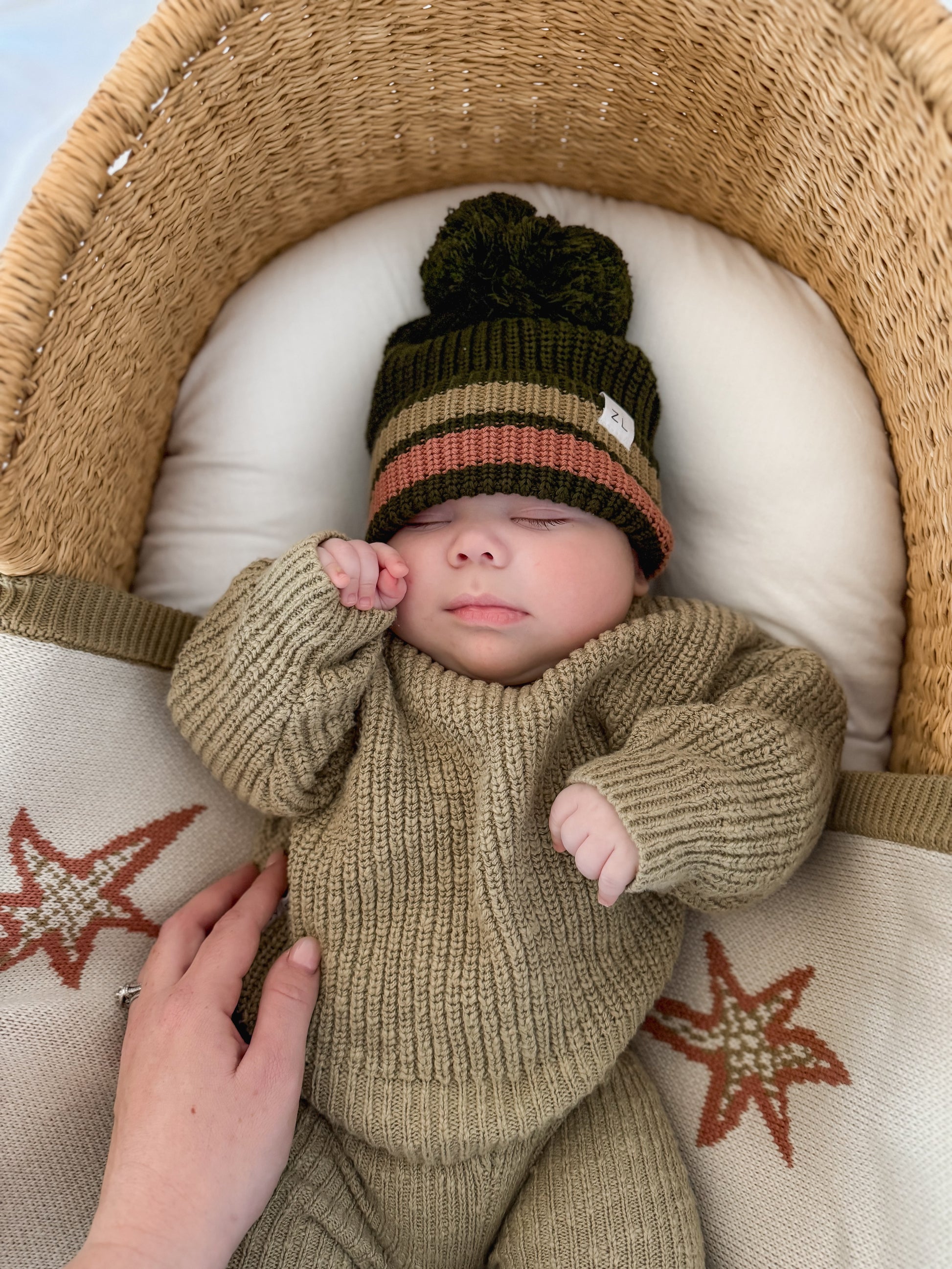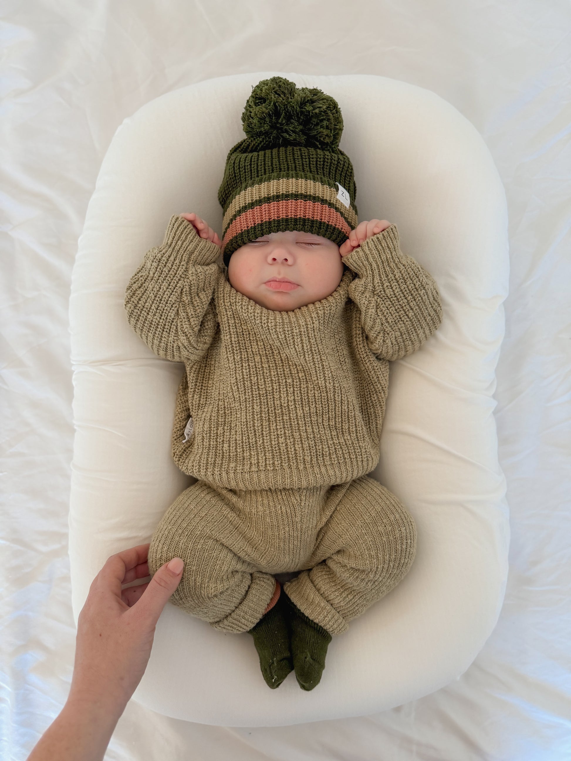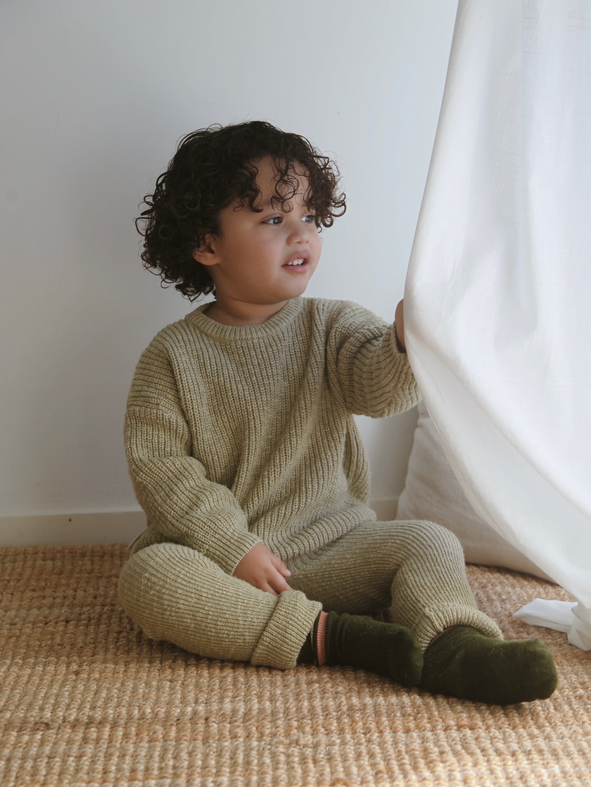 Our original chunky and textured knit jumper in our Olive colour. Pair with items from our Valley Collection.