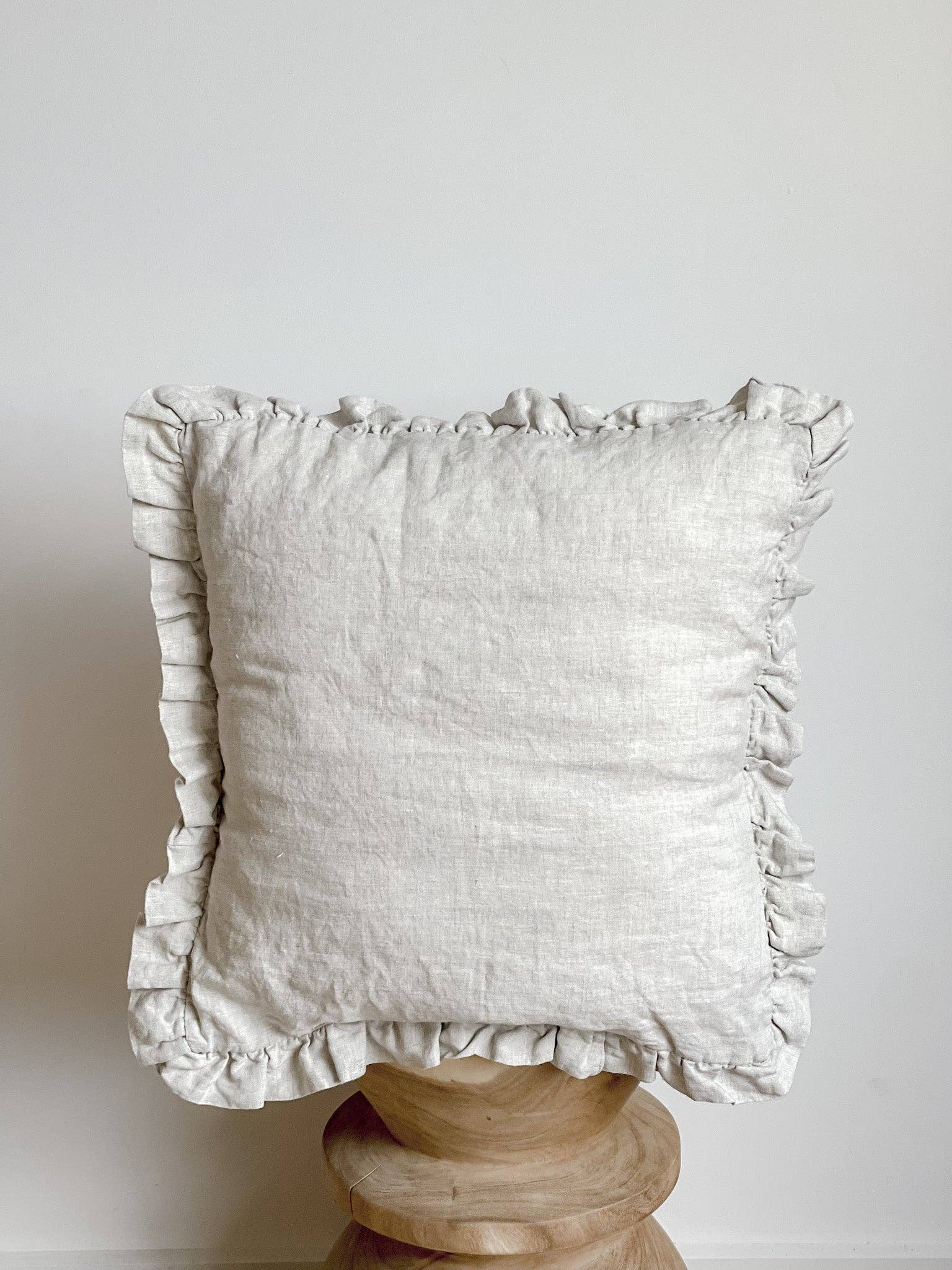 Add a touch of elegance and sophistication to your home decor with our Pure Linen Ruffle Cushion Cover. Made from 100% pure linen, this luxurious cushion cover is designed to provide a soft, breathable, and comfortable texture that will elevate your living space. Feather insert included.
