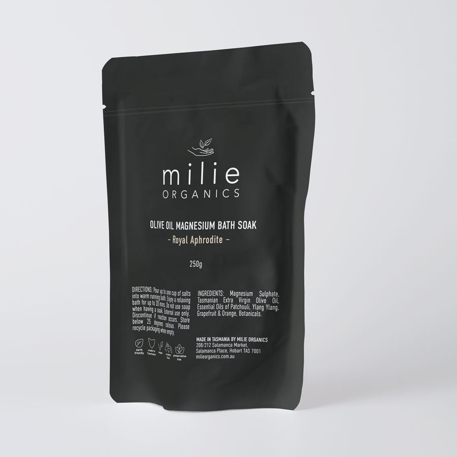 Restorative bath soaks with the goodness of Tasmanian olive oil, magnesium sulphate, essential oils and botanicals. Our Olive Oil & Magnesium Bath Soaks are perfect for tired muscles, or simply for luxurious Time Out to unwind.