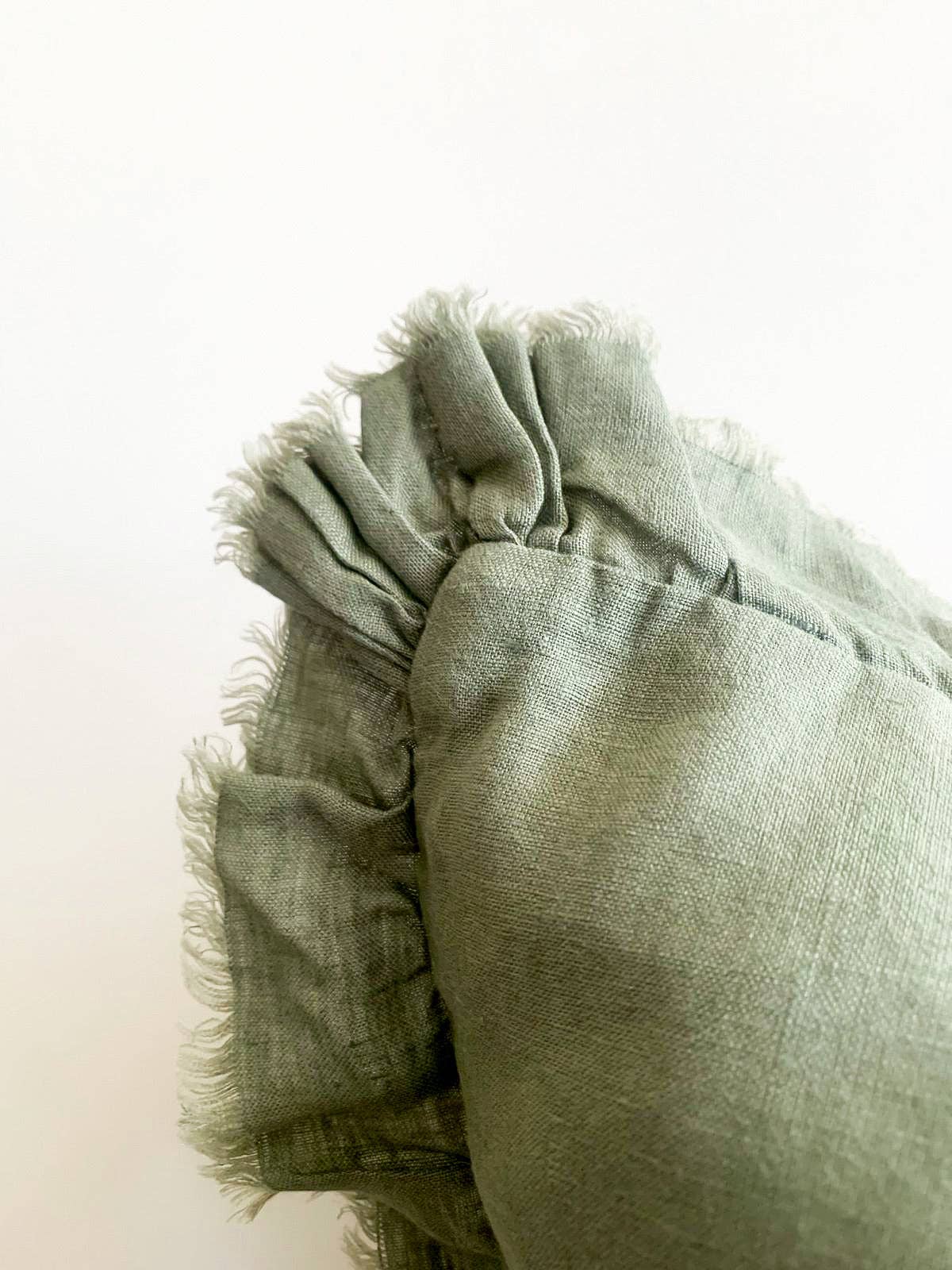 Pure French Linen Frayed Edge Ruffle Cushion - Khaki