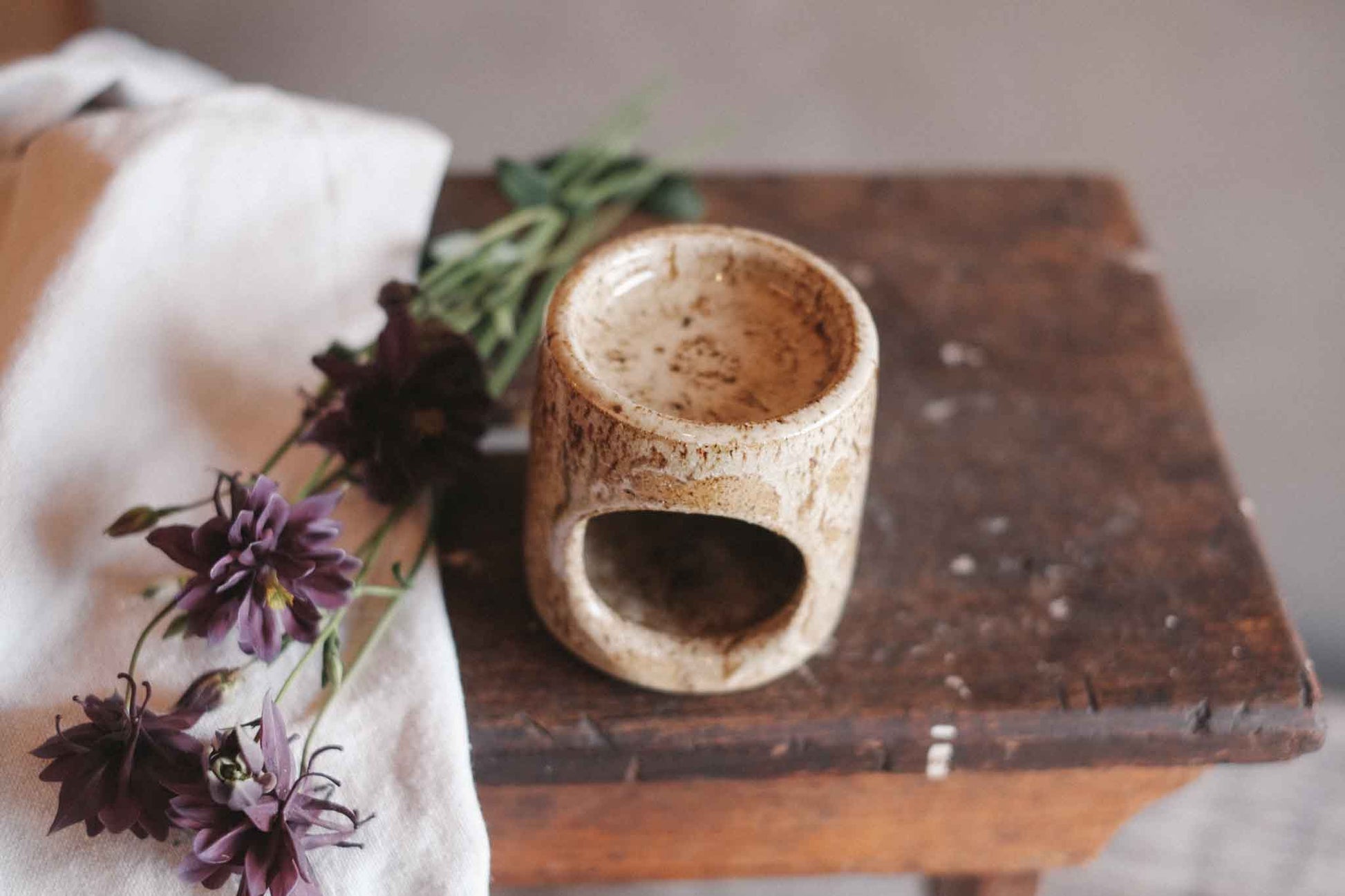 Small and sculptural, this oil burner/wax warmer is finished in our house-made sage green glaze. The colour has gentle tonal shifts and a soft, earthy feel that shows off the form without hiding the handmade character. Designed with space for a tealight below and oil or wax above, it’s equal parts functional and wabi-sabi. Each piece has its own subtle glaze variations, making every one a little different in the best way.