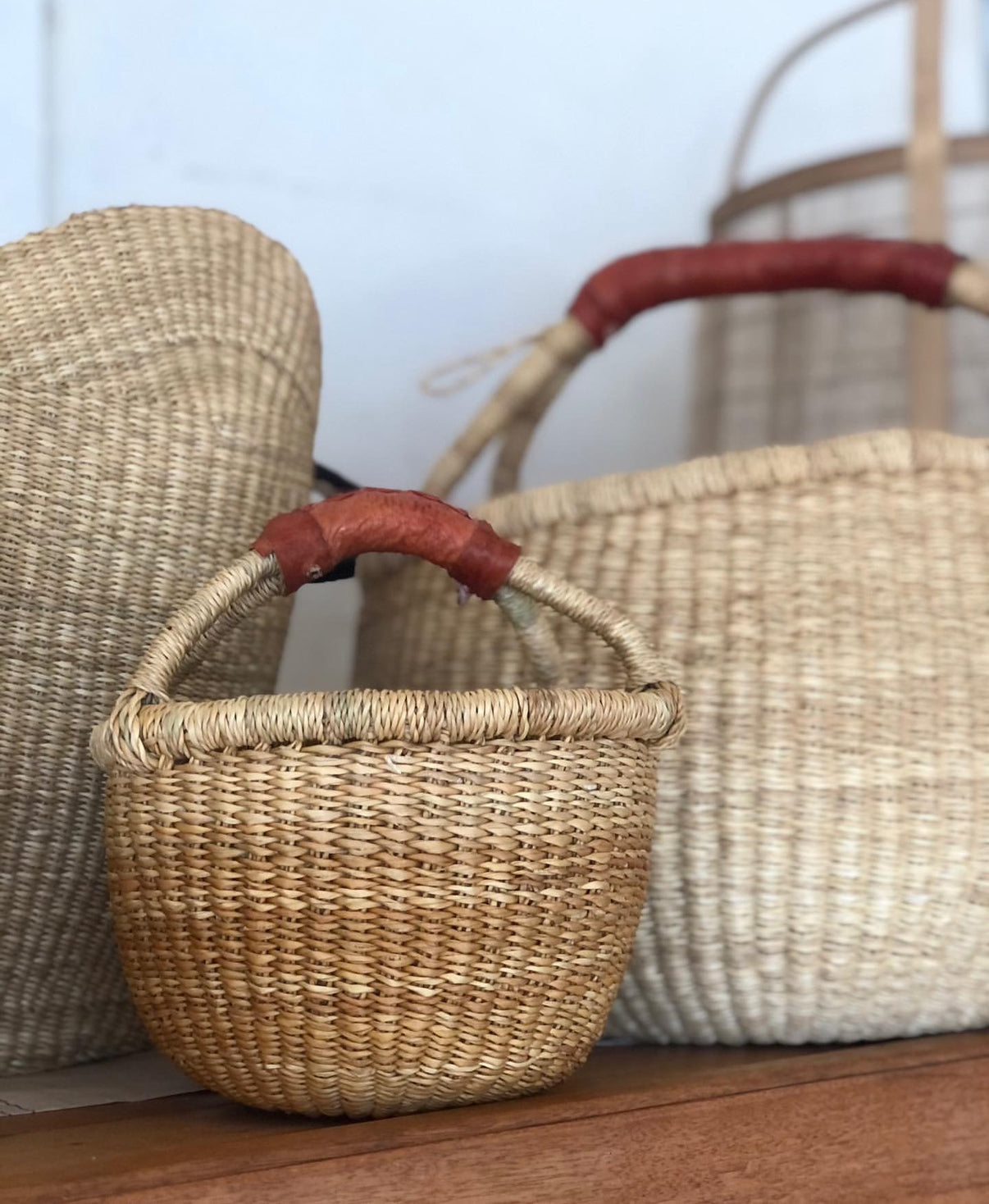 Sometimes your basket may bend or flatten. Don’t worry, it’s very easy to fix. Simply wet the basket lightly with warm water. Then you can easily reshape it by hand and let it dry in the shade. This method works well with our Bolga baskets, which are flexible yet strong.