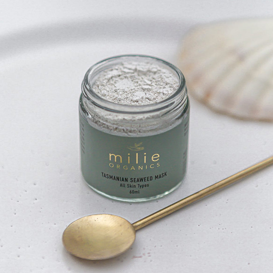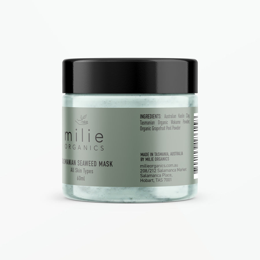 A pure, Tasmanian seaweed face mask to clear oil & dirt build ups, prevent moisture loss, and nourish with local ingredients. Our organic Tasmanian seaweed is harvested from the East Coast and contains fucoidan- a known anti ageing ingredient. Rich in amino acids, our seaweed mask will help your skin look youthful and plump.