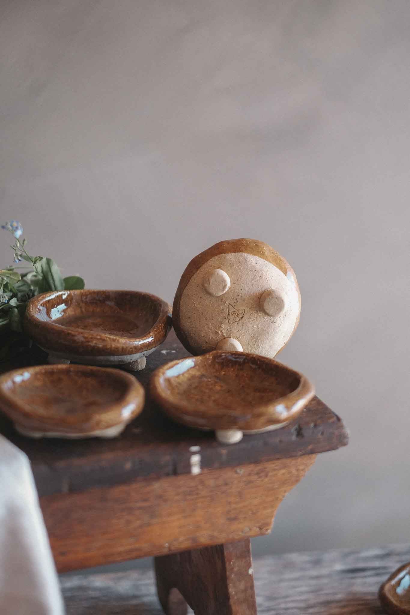 These handcrafted wabi-sabi small dishes, each set on three tiny feet, bring a touch of charm and elegance to any setting. Perfect for holding trinkets or serving garnishes at a fancy dinner, their unique, organic form embraces imperfection. Made from sustainably foraged wild clay, they’re a beautiful nod to the natural world.